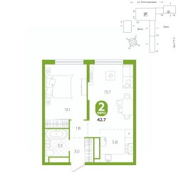 площадь квартиры - 42,7 кв.мГармоничные пропорции и большие окна наполняют пространство светом, создавая уютную атмосферу. Умное зонирование позволяет удобно организовать как рабочую, так и жилую зоны, что особенно важно для современных жителей. Санузел спроектирован с учетом всех потребностей: здесь есть ванна и место для стиральной машины. Каждый метр квартиры используется с максимальной эффективностью, что делает эту планировку отличным выбором для тех, кто ценит комфорт и удобство.