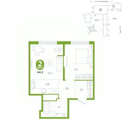 площадь квартиры - 44,2 кв.мГармоничные пропорции и большие окна наполняют пространство светом, создавая уютную атмосферу. Умное зонирование позволяет удобно организовать как рабочую, так и жилую зоны, что особенно важно для современных жителей. Санузел спроектирован с учетом всех потребностей: здесь есть ванна и место для стиральной машины. Каждый метр квартиры используется с максимальной эффективностью, что делает эту планировку отличным выбором для тех, кто ценит комфорт и удобство.