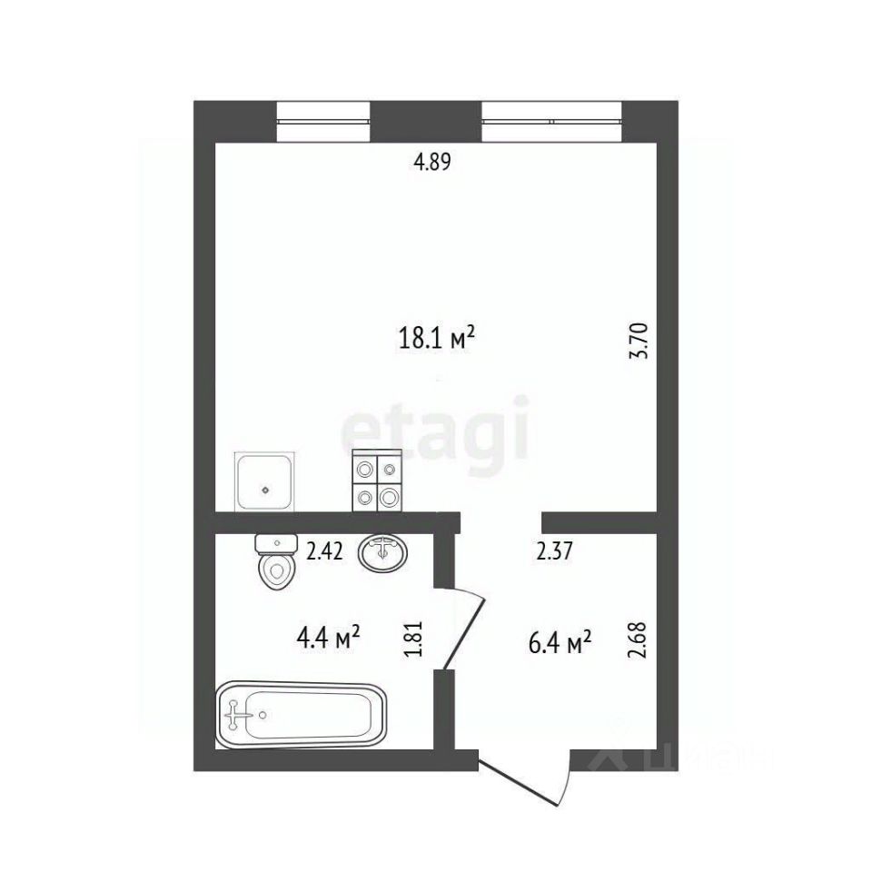 Кухонная зона оборудована функциональным гарнитуром со встроенной техникой, что оптимизирует процесс приготовления пищи. Встроенный шкаф-купе обеспечивает удобное хранение вещей без потери полезной площади. Большие окна обеспечивают хорошую инсоляцию, создавая ощущение простора.