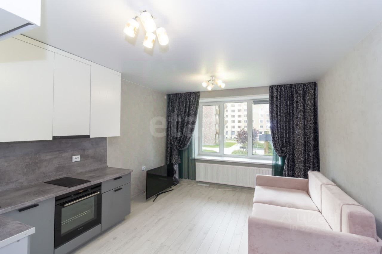 Внутри студии выполнен свежий, качественный ремонт: санузел отделан плиткой, установлена надежная немецкая сантехника, а стены украшены современными обоями. На полу прочный и красивый ламинат. Просторное окно выходит во двор, где расположена детская площадка, что делает эту квартиру идеальной для семей с детьми. Также стоит отметить, что в квартире разведено электричество, а входная сейф-дверь обеспечивает дополнительную безопасность.