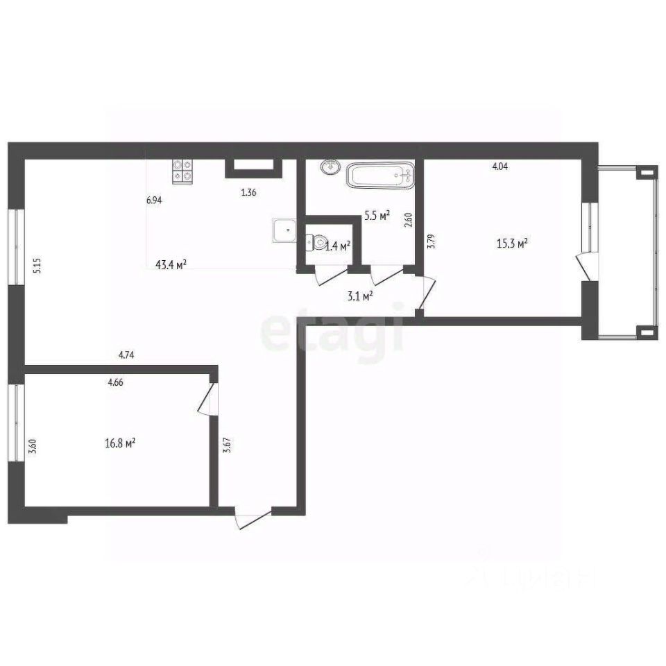 Пpeдлагаeм вашему вниманию купить двуxкомнaтную квартиpу пo размepу