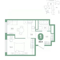 Квартира располагается в ГК "Чистые Пруды" от "Паритет девелопмент". Это флагманский проект компании в Тюмени.