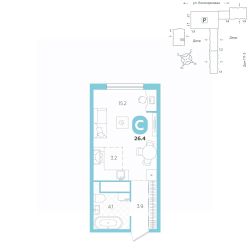 площадь квартиры - 26,4 кв.м