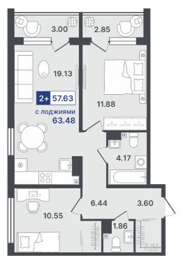 57,63 м²
