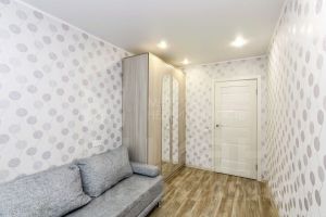 Квартира прошла свежий капитальный ремонт: залита бетонная стяжка пола, выровнены стены, установлены пластиковые окна во всех комнатах. Натяжные потолки с точечным освещением придают современный вид, а стены оклеены стильными обоями. На полу качественный линолеум, при входе керамогранит. Санузлы полностью облицованы кафелем, сантехника находится в отличном состоянии. Качественные входная и межкомнатные двери обеспечивают надежность и уют.