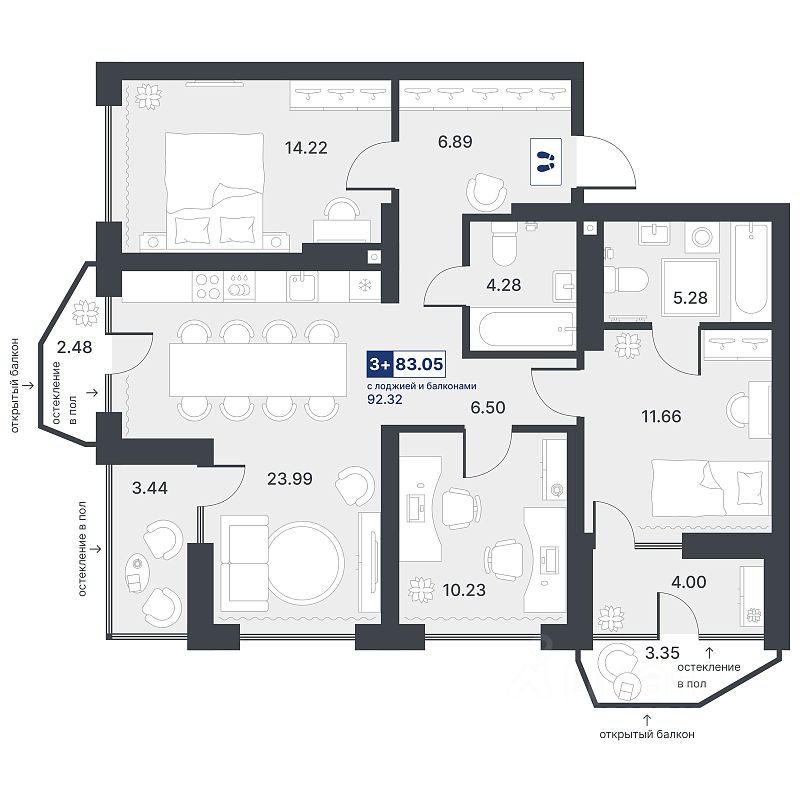 Продаётся 3-комнатная квартира в строящемся доме (ГП-1), срок сдачи: I-кв. 2027, общей площадью 83.05 кв.м., на 2 этаже. Новый жилой комплекс от Специализированного застройщика "Звезда" расположен в г. Тюмень по ул. Рылеева.