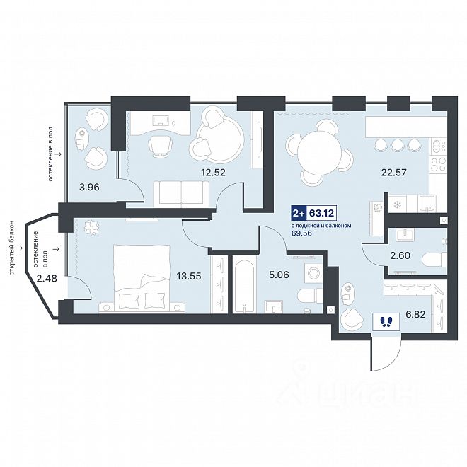Продаётся 2-комнатная квартира в строящемся доме (ГП-1), срок сдачи: I-кв. 2027, общей площадью 63.12 кв.м., на 2 этаже. Новый жилой комплекс от Специализированного застройщика "Звезда" расположен в г. Тюмень по ул. Рылеева.