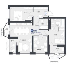 Продаётся 3-комнатная квартира в строящемся доме (ГП-1), срок сдачи: I-кв. 2027, общей площадью 83.05 кв.м., на 4 этаже. Новый жилой комплекс от Специализированного застройщика "Звезда" расположен в г. Тюмень по ул. Рылеева.