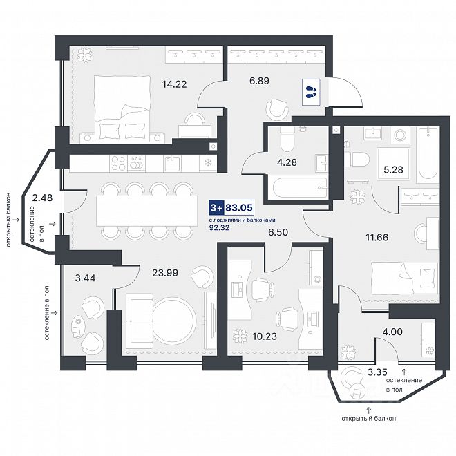 Общая площадь83,05 м²