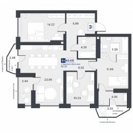 Продается 3-комн. квартира, 83,05 м²