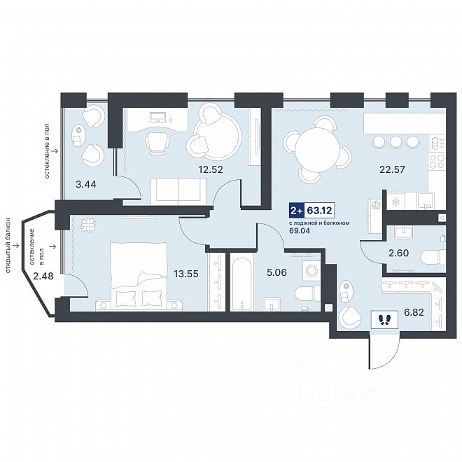 Продаётся 2-комнатная квартира в строящемся доме (ГП-1), срок сдачи: I-кв. 2027, общей площадью 63.12 кв.м., на 4 этаже. Новый жилой комплекс от Специализированного застройщика "Звезда" расположен в г. Тюмень по ул. Рылеева.