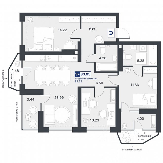 Продаётся 3-комнатная квартира в строящемся доме (ГП-1), срок сдачи: I-кв. 2027, общей площадью 83.05 кв.м., на 7 этаже. Новый жилой комплекс от Специализированного застройщика "Звезда" расположен в г. Тюмень по ул. Рылеева.