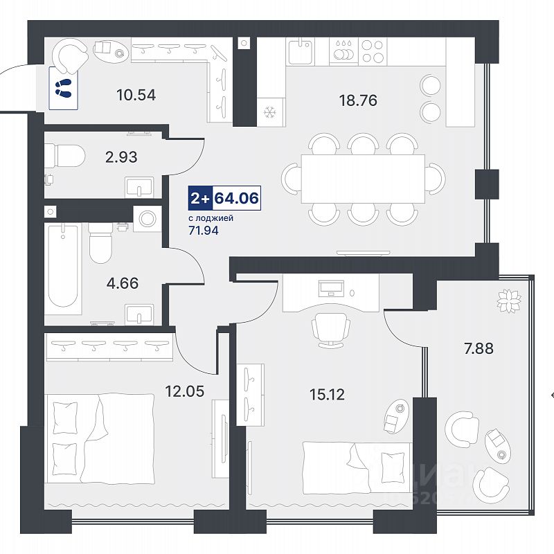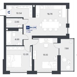 Продаётся 2-комнатная квартира в строящемся доме (ГП-1), срок сдачи: I-кв. 2027, общей площадью 64.06 кв.м., на 2 этаже. Новый жилой комплекс от Специализированного застройщика "Звезда" расположен в г. Тюмень по ул. Рылеева.