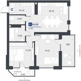 Продаётся 2-комнатная квартира в строящемся доме (ГП-1), срок сдачи: I-кв. 2027, общей площадью 64.06 кв.м., на 3 этаже. Новый жилой комплекс от Специализированного застройщика "Звезда" расположен в г. Тюмень по ул. Рылеева.