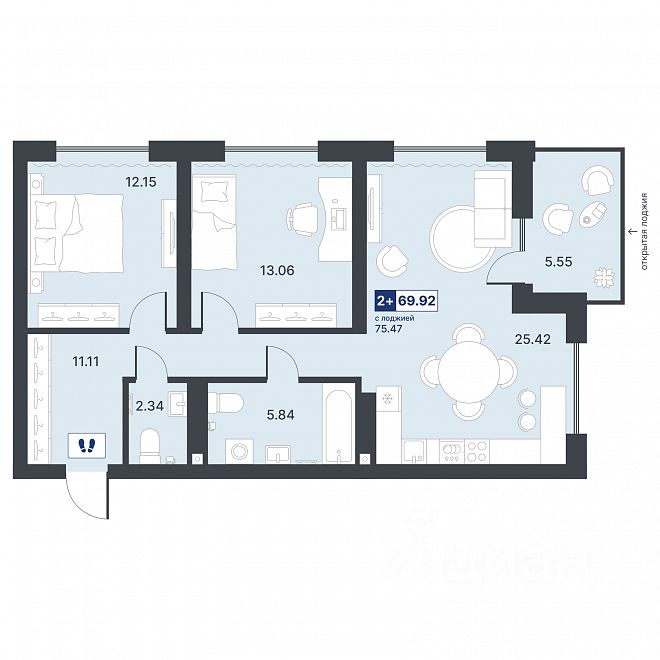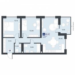 Продаётся 2-комнатная квартира в строящемся доме (ГП-1), срок сдачи: I-кв. 2027, общей площадью 69.92 кв.м., на 7 этаже. Новый жилой комплекс от Специализированного застройщика "Звезда" расположен в г. Тюмень по ул. Рылеева.