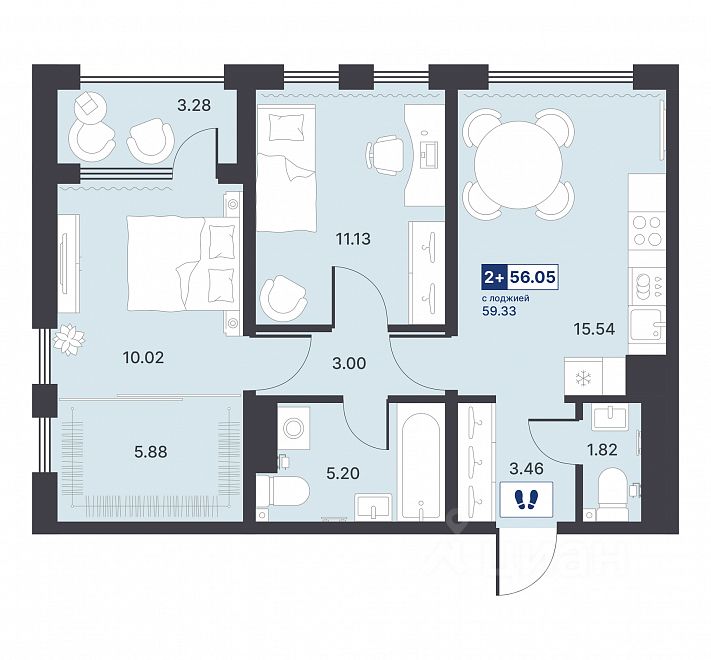 Продаётся 2-комнатная квартира в строящемся доме (ГП-1 (Менжинского, 10к1)), срок сдачи: III-кв. 2027, общей площадью 56.05 кв.м., на 6 этаже. Новый жилой комплекс от Специализированного застройщика "Звезда" расположен по адресу: г. Тюмень, по ул. Менжинского.