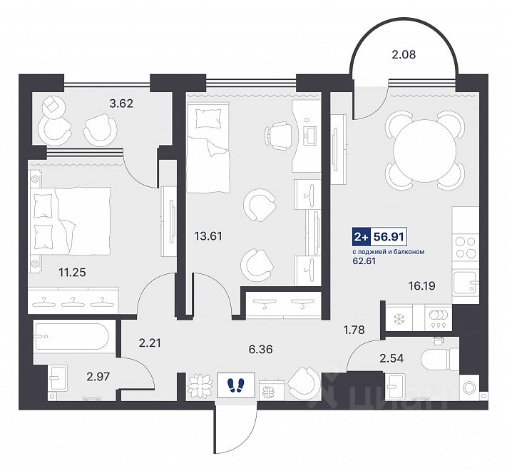 Продаётся 2-комнатная квартира в строящемся доме (ГП-1 (Менжинского, 10к1)), срок сдачи: III-кв. 2027, общей площадью 56.91 кв.м., на 3 этаже. Новый жилой комплекс от Специализированного застройщика "Звезда" расположен по адресу: г. Тюмень, по ул. Менжинского.