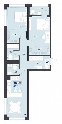 Продаётся 2-комнатная квартира в строящемся доме (ГП-1 (Менжинского, 10к1)), срок сдачи: III-кв. 2027, общей площадью 65.7 кв.м., на 5 этаже. Новый жилой комплекс от Специализированного застройщика "Звезда" расположен по адресу: г. Тюмень, по ул. Менжинского.