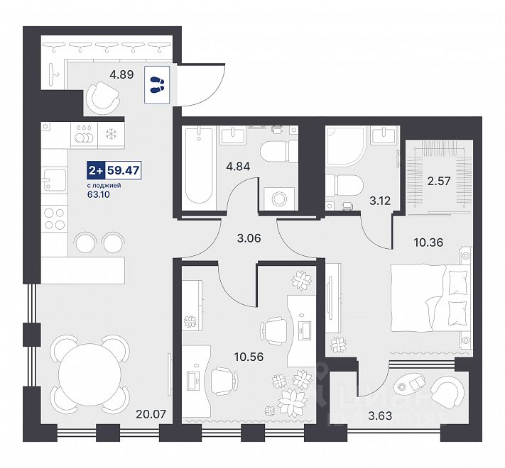 Продаётся 2-комнатная квартира в строящемся доме (ГП-1 (Менжинского, 10к1)), срок сдачи: III-кв. 2027, общей площадью 59.47 кв.м., на 4 этаже. Новый жилой комплекс от Специализированного застройщика "Звезда" расположен по адресу: г. Тюмень, по ул. Менжинского.