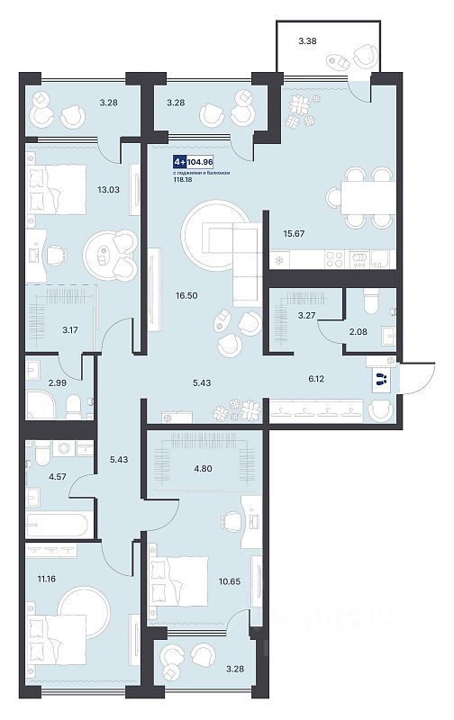 Продаётся 4-комнатная квартира в строящемся доме (ГП-1 (Менжинского, 10к1)), срок сдачи: III-кв. 2027, общей площадью 104.96 кв.м., на 3 этаже. Новый жилой комплекс от Специализированного застройщика "Звезда" расположен по адресу: г. Тюмень, по ул. Менжинского.
