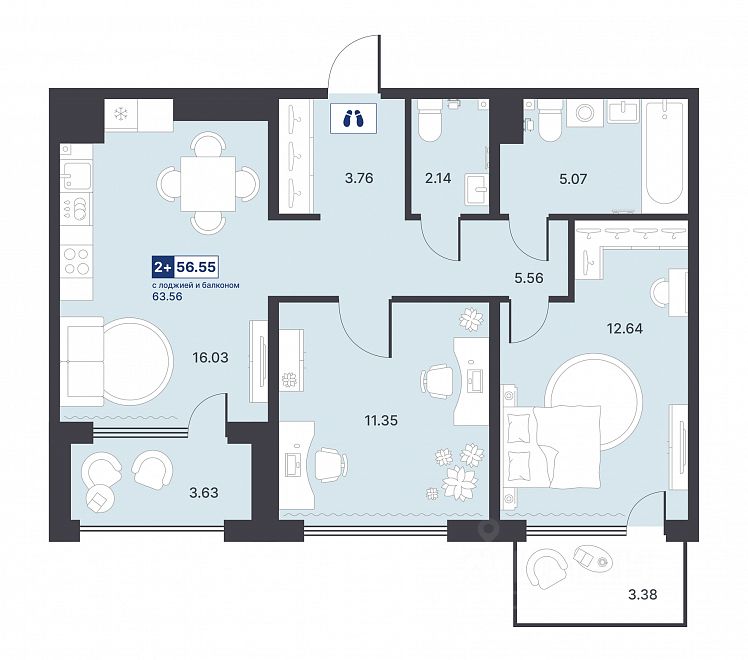 Продаётся 2-комнатная квартира в строящемся доме (ГП-1 (Менжинского, 10к1)), срок сдачи: III-кв. 2027, общей площадью 56.55 кв.м., на 2 этаже. Новый жилой комплекс от Специализированного застройщика "Звезда" расположен по адресу: г. Тюмень, по ул. Менжинского.