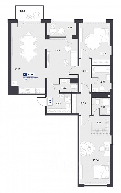 Продаётся 3-комнатная квартира в строящемся доме (ГП-1 (Менжинского, 10к1)), срок сдачи: III-кв. 2027, общей площадью 87.65 кв.м., на 3 этаже. Новый жилой комплекс от Специализированного застройщика "Звезда" расположен по адресу: г. Тюмень, по ул. Менжинского.