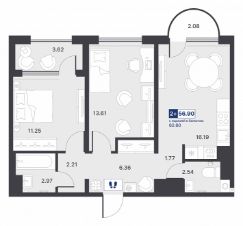 Продаётся 2-комнатная квартира в строящемся доме (ГП-1 (Менжинского, 10к1)), срок сдачи: III-кв. 2027, общей площадью 56.9 кв.м., на 13 этаже. Новый жилой комплекс от Специализированного застройщика "Звезда" расположен по адресу: г. Тюмень, по ул. Менжинского.