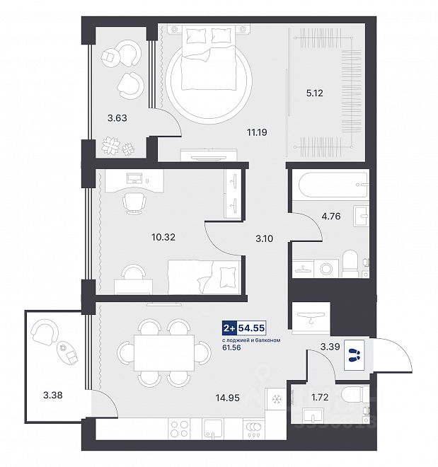 Продаётся 2-комнатная квартира в строящемся доме (ГП-1 (Менжинского, 10к1)), срок сдачи: III-кв. 2027, общей площадью 54.55 кв.м., на 2 этаже. Новый жилой комплекс от Специализированного застройщика "Звезда" расположен по адресу: г. Тюмень, по ул. Менжинского.