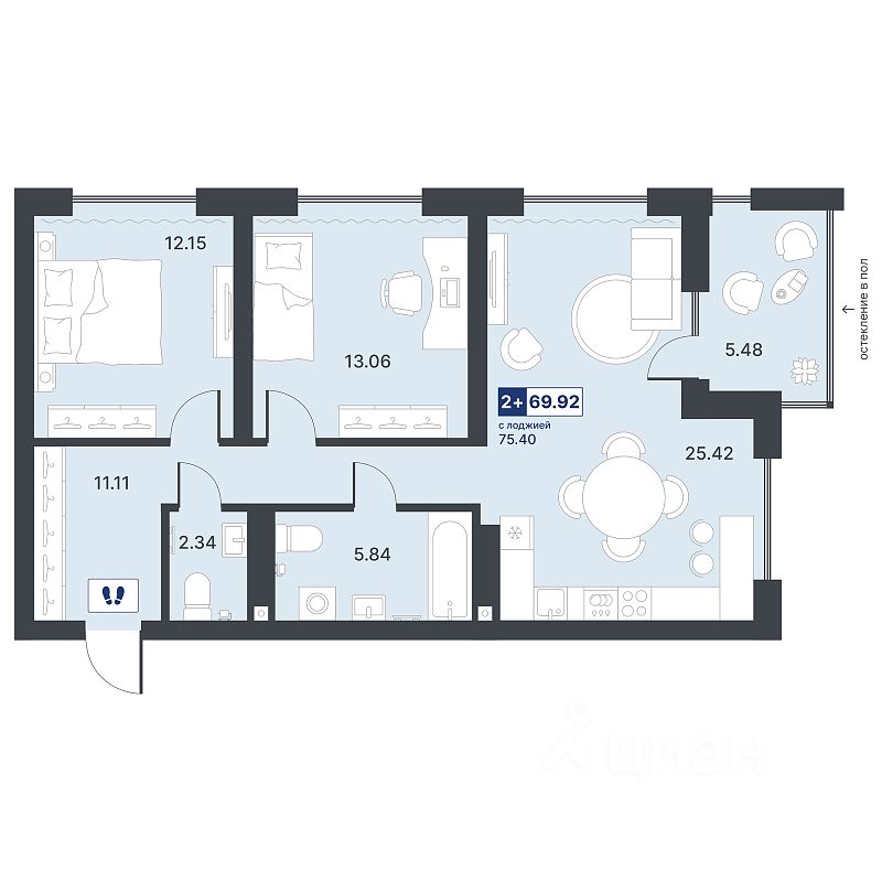 Продаётся 2-комнатная квартира в строящемся доме (ГП-1), срок сдачи: I-кв. 2027, общей площадью 69.92 кв.м., на 12 этаже. Новый жилой комплекс от Специализированного застройщика "Звезда" расположен в г. Тюмень по ул. Рылеева.