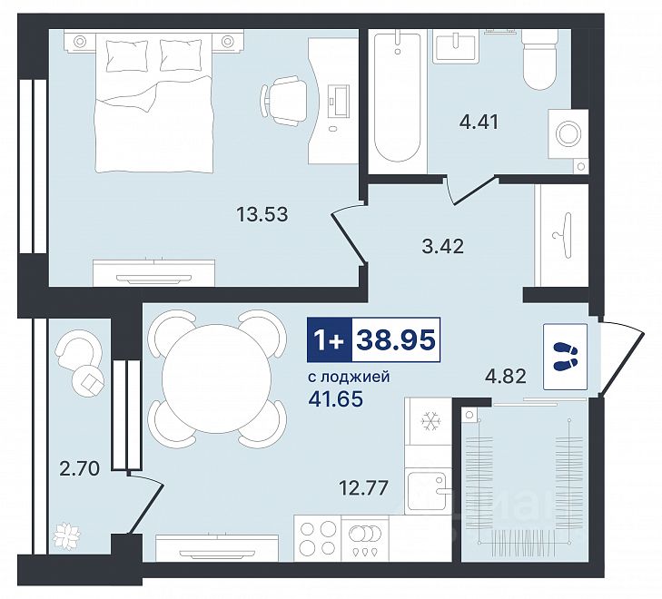 Продаётся 1-комнатная квартира в строящемся доме (ГП-2 (Ставропольская, 1к4)), срок сдачи: IV-кв. 2026, общей площадью 38.95 кв.м., на 4 этаже. Новый жилой комплекс "Один плюс один" от Специализированного застройщика "Звезда" расположен по адресу: г. Тюмень, ул. Ставропольская, 1А.