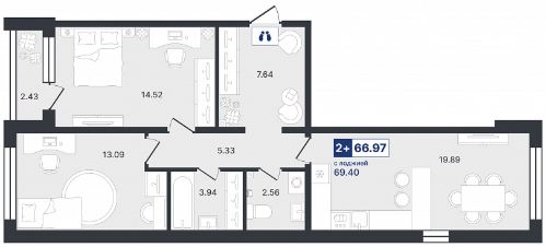 Продаётся 2-комнатная квартира в строящемся доме (ГП-2 (Ставропольская, 1к4)), срок сдачи: IV-кв. 2026, общей площадью 66.97 кв.м., на 9 этаже. Новый жилой комплекс "Один плюс один" от Специализированного застройщика "Звезда" расположен по адресу: г. Тюмень, ул. Ставропольская, 1А.