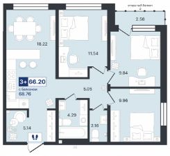 Продаётся 3-комнатная квартира в строящемся доме (ГП-2 (Ставропольская, 1к4)), срок сдачи: IV-кв. 2026, общей площадью 66.2 кв.м., на 4 этаже. Новый жилой комплекс "Один плюс один" от Специализированного застройщика "Звезда" расположен по адресу: г. Тюмень, ул. Ставропольская, 1А.