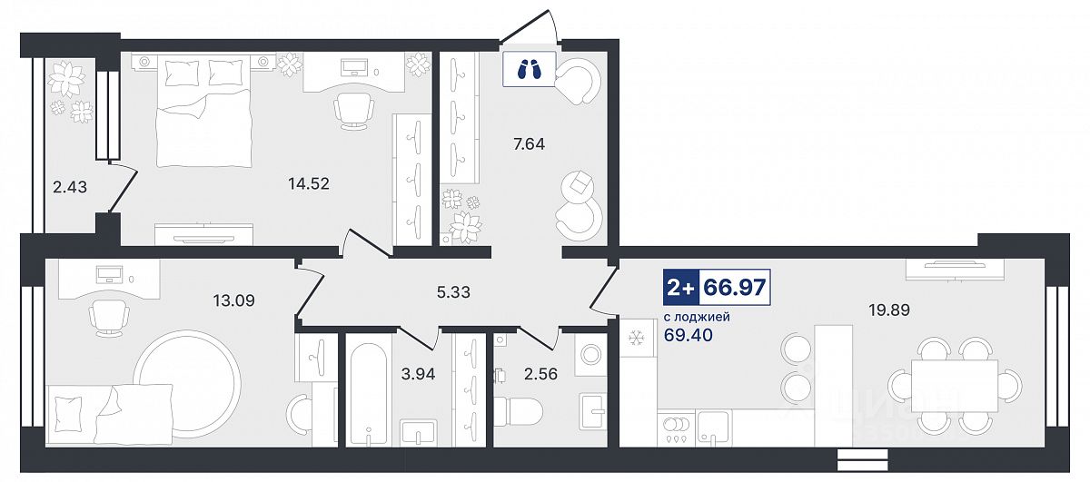 Продаётся 2-комнатная квартира в строящемся доме (ГП-2 (Ставропольская, 1к4)), срок сдачи: IV-кв. 2026, общей площадью 66.97 кв.м., на 5 этаже. Новый жилой комплекс "Один плюс один" от Специализированного застройщика "Звезда" расположен по адресу: г. Тюмень, ул. Ставропольская, 1А.