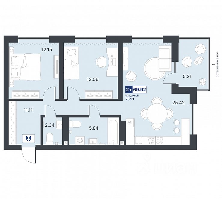 Общая площадь69,92 м²