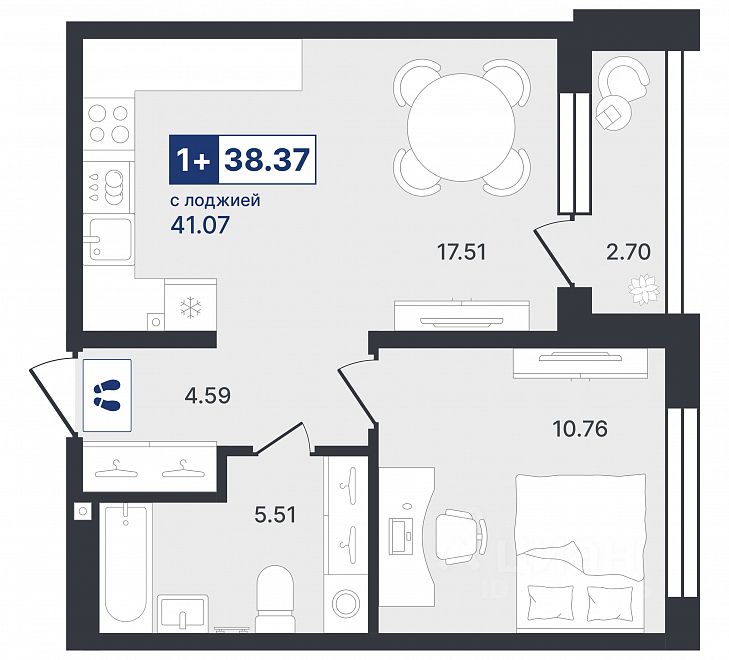 Продаётся 1-комнатная квартира в строящемся доме (ГП-2 (Ставропольская, 1к4)), срок сдачи: IV-кв. 2026, общей площадью 38.37 кв.м., на 3 этаже. Новый жилой комплекс "Один плюс один" от Специализированного застройщика "Звезда" расположен по адресу: г. Тюмень, ул. Ставропольская, 1А.