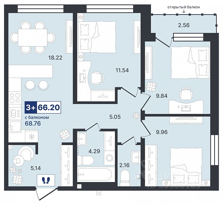 Продаётся 3-комнатная квартира в строящемся доме (ГП-2 (Ставропольская, 1к4)), срок сдачи: IV-кв. 2026, общей площадью 66.2 кв.м., на 7 этаже. Новый жилой комплекс "Один плюс один" от Специализированного застройщика "Звезда" расположен по адресу: г. Тюмень, ул. Ставропольская, 1А.