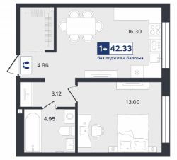 Продаётся 1-комнатная квартира в строящемся доме (ГП-2 (Ставропольская, 1к4)), срок сдачи: IV-кв. 2026, общей площадью 42.33 кв.м., на 12 этаже. Новый жилой комплекс "Один плюс один" от Специализированного застройщика "Звезда" расположен по адресу: г. Тюмень, ул. Ставропольская, 1А.