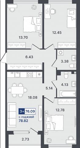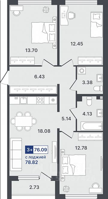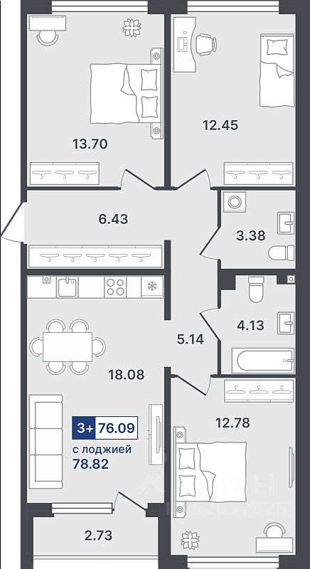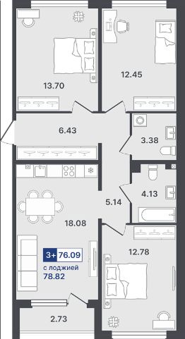 Продаётся 3-комнатная квартира в строящемся доме (ГП-2 (Сергиенко, д. 1)), срок сдачи: IV-кв. 2026, общей площадью 76.09 кв.м., на 2 этаже. Новый жилой комплекс от Специализированного застройщика "Звезда" расположен по адресу: г. Тюмень, по ул. Стройотрядовская.