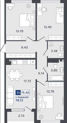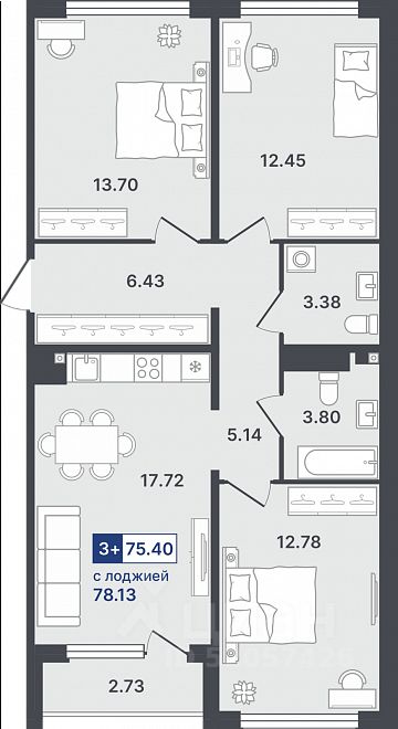 Продаётся 3-комнатная квартира в строящемся доме (ГП-2 (Сергиенко, д. 1)), срок сдачи: IV-кв. 2026, общей площадью 75.4 кв.м., на 3 этаже. Новый жилой комплекс от Специализированного застройщика "Звезда" расположен по адресу: г. Тюмень, по ул. Стройотрядовская.
