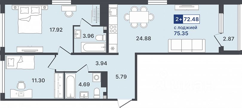 Продаётся 2-комнатная квартира в строящемся доме (ГП-2 (Сергиенко, д. 1)), срок сдачи: IV-кв. 2026, общей площадью 72.48 кв.м., на 5 этаже. Новый жилой комплекс от Специализированного застройщика "Звезда" расположен по адресу: г. Тюмень, по ул. Стройотрядовская.