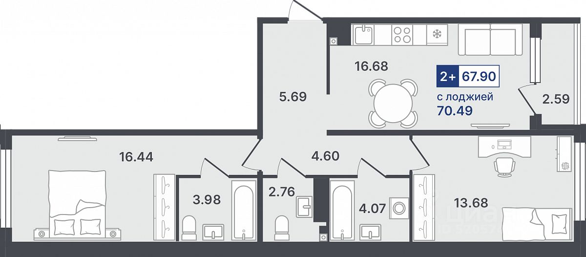 Продаётся 2-комнатная квартира в строящемся доме (ГП-2 (Сергиенко, д. 1)), срок сдачи: IV-кв. 2026, общей площадью 67.9 кв.м., на 6 этаже. Новый жилой комплекс от Специализированного застройщика "Звезда" расположен по адресу: г. Тюмень, по ул. Стройотрядовская.