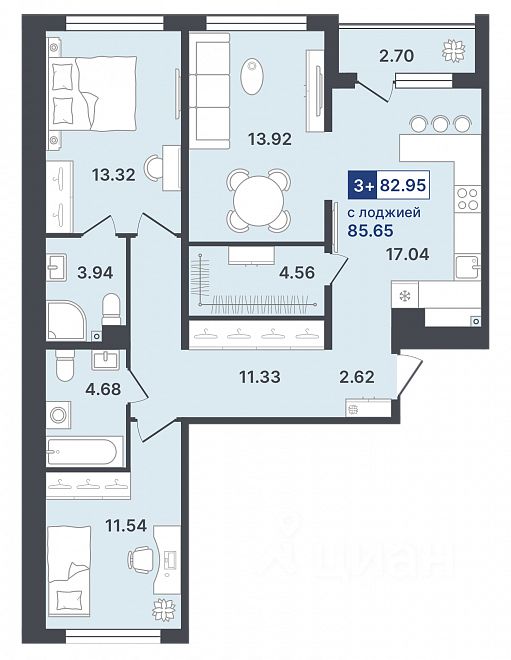 Продаётся 3-комнатная квартира в строящемся доме (ГП-1 (Стройотрядовская, д. 4)), срок сдачи: II-кв. 2026, общей площадью 82.95 кв.м., на 2 этаже. Новый жилой комплекс от Специализированного застройщика "Звезда" расположен по адресу: г. Тюмень, по ул. Стройотрядовская.