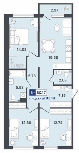 Продаётся 3-комнатная квартира в строящемся доме (ГП-1 (Стройотрядовская, д. 4)), срок сдачи: II-кв. 2026, общей площадью 80.17 кв.м., на 2 этаже. Новый жилой комплекс от Специализированного застройщика "Звезда" расположен по адресу: г. Тюмень, по ул. Стройотрядовская.
