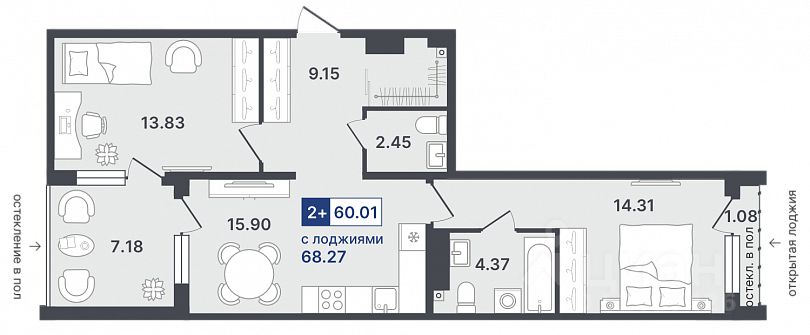 Продаётся 2-комнатная квартира в строящемся доме (ГП-1 (Стройотрядовская, д. 4)), срок сдачи: II-кв. 2026, общей площадью 60.01 кв.м., на 4 этаже. Новый жилой комплекс от Специализированного застройщика "Звезда" расположен по адресу: г. Тюмень, по ул. Стройотрядовская.