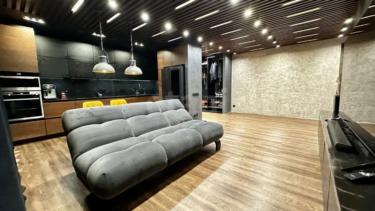 Просторная квартира площадью 120 м² на восьмом этаже кирпичного дома предлагает к продаже не просто недвижимость, а полностью готовое к комфортной жизни пространство с продуманным дизайном и современными технологиями. Объект расположен в тихом, озелененном районе с развитой инфраструктурой: в нескольких минутах ходьбы находятся школа, детский сад, парк с игровыми площадками, супермаркет и крупный торговый центр. Вид из окон открывается на парк и ухоженный двор с открытой парковкой. Планировка включает просторную кухню-гостиную, объединенную с зоной отдыха, где многоуровневое освещение, включая трековые светильники и скрытую LED-подсветку, создает эффект парящего потолка. Кухонный гарнитур выполнен из натурального камня и шпона и укомплектован техникой премиум-класса. Спальня оформлена акцентной стеной с художественной росписью, а в детской комнате реализована уникальная тематическая отделка. Дополнительные преимущества — изолированная гардеробная площадью 10 м² и современная ванная комната 6 м² с отдельно стоящей ванной и душевой зоной. В квартире установлена система "Умный дом" для управления светом и климатом с помощью смартфона, энергоэффективные дизайнерские радиаторы, система рекуперации воздуха и премиальная шумоизоляция. Дом оснащен надежными лифтами Otis и современной входной дверью. Это предложение сочетает выгодное расположение в спокойном районе, уникальный ремонт, не требующий дополнительных вложений, и технологические решения для повседневного комфорта.