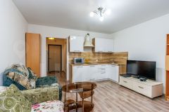 - Полностью оборудованная кухня с гарнитуром и встроенной техникой.