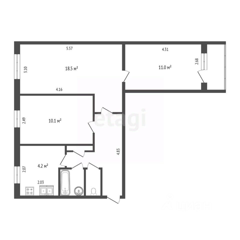 57,3 м²