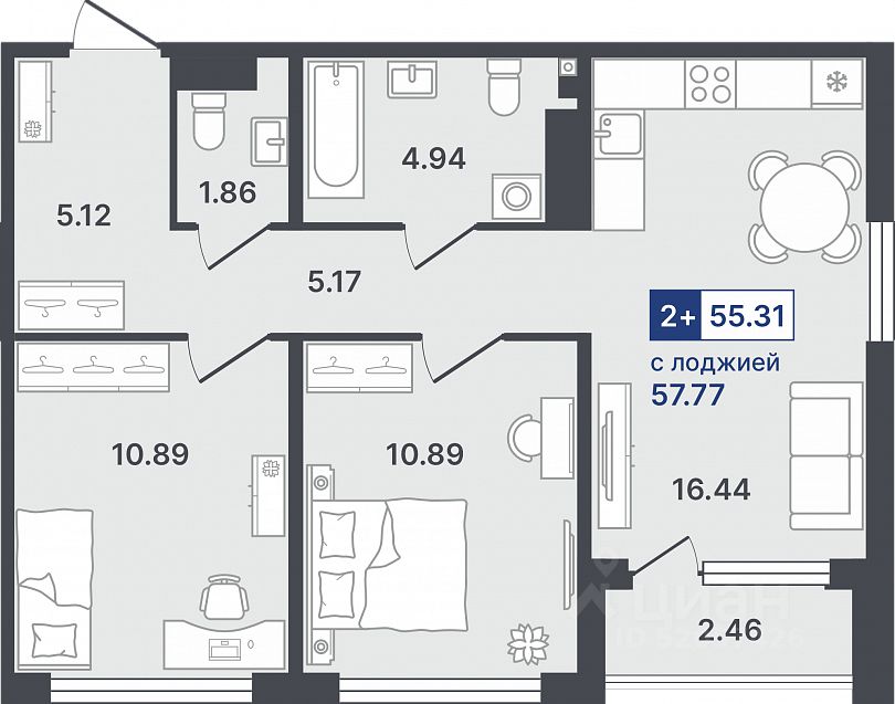 Продаётся 2-комнатная квартира в строящемся доме (ГП-2 (Сергиенко, д. 1)), срок сдачи: IV-кв. 2026, общей площадью 55.31 кв.м., на 8 этаже. Новый жилой комплекс от Специализированного застройщика "Звезда" расположен по адресу: г. Тюмень, по ул. Стройотрядовская.