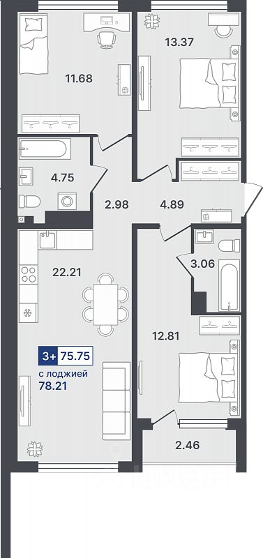 Продаётся 3-комнатная квартира в строящемся доме (ГП-2 (Сергиенко, д. 1)), срок сдачи: IV-кв. 2026, общей площадью 75.75 кв.м., на 8 этаже. Новый жилой комплекс от Специализированного застройщика "Звезда" расположен по адресу: г. Тюмень, по ул. Стройотрядовская.