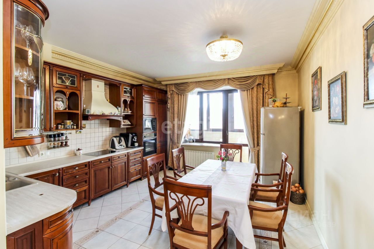 Безупречное состояние квартиры, качественный дорогой ремонт, индивидуальная планировка, позволяют заехать сегодня и проживать без дополнительных вложений. По планировке: кухня-столовая, гостиная, три детских, спальня для взрослых, гостевая спальня, кабинет, большая учебная комната на 3 рабочих места, большая игровая комната, бильярдная, три санузла, встроенная сауна в одной из ванных комнат с балконом, джакузи, 2 гардеробных, лоджия в каждой комнате. По ремонту: окна пластиковые с выходом на две стороны (юг-север), потолки натяжные + гипсокартон с точечным освещением, на стенах обои, на полу паркетная доска, пробка + кафель с подогревом. Установлены натуральные межкомнатные двери. Сан.узлы оформлены качественным кафелем и санфаянсом (ванна, душевая кабина, раковина, унитаз, биде), шкафчиками и зеркалами, сантехникой и смесителями. При продаже остается всё, в т.ч. кухонный гарнитур с встроенной бытовой техникой Mille (вытяжка, кофе-машина, варочная панель, духовой шкаф, микроволновая печь, холодильник). Шкаф-купе, гардеробная, 2 кондиционера, приборы освещения, карнизы.
